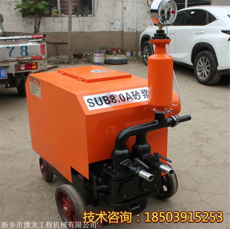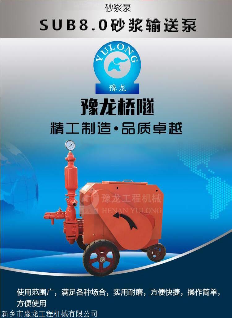 该产品结构紧密相连,压力高,稳定性很高,有四种速度,可根据自身的需求调节注浆量和注浆压力。既可放在地面或立井作业盘上,也可固定在板车上,在斜井或平巷的轨道上运行,进行注浆作业。它们均可输送水泥浆(不可有颗粒)、黄泥浆、油水玻璃、水等多种介质。维修、操作方便。经几百个不同条件下的地浆工程使用,效果很好。~砂浆输送泵
