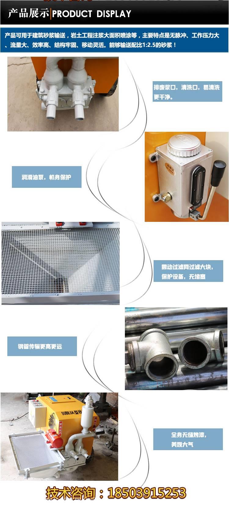 传统的构造浇注需要人工,人工打砂浆存在着以下问题:人工浇筑砂浆连续性不好,会有空隙,质量不高。人工浇筑砂浆每人每天只能浇注5-6根,施工期很长。人工浇筑砂浆劳动强度大,效率低,且雇佣费用高。安徽砂浆输送泵/新型砂浆输送泵批发价格